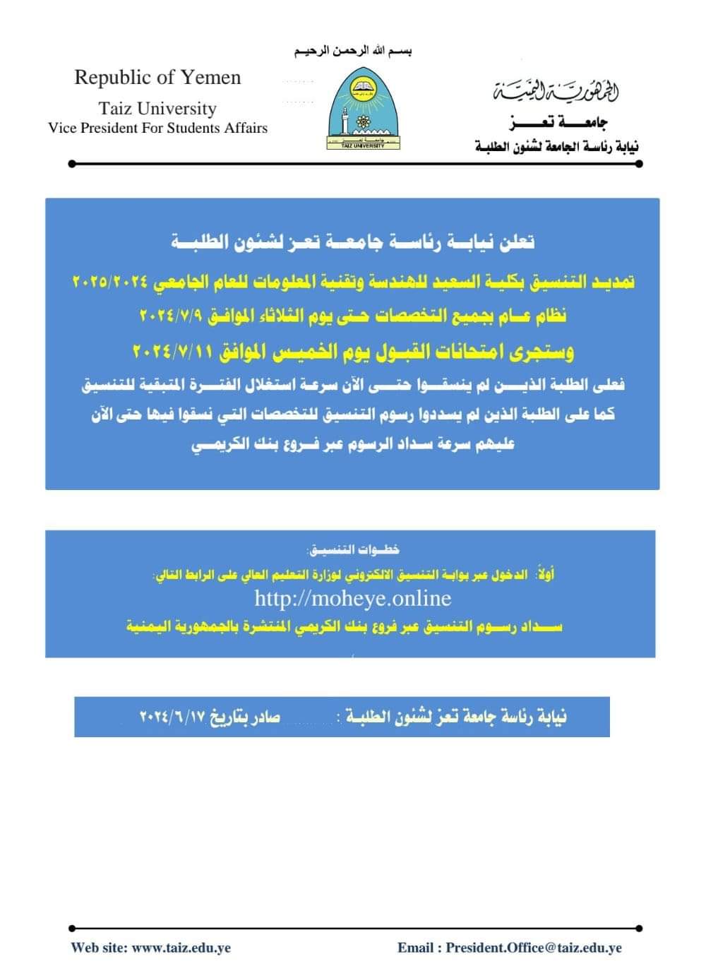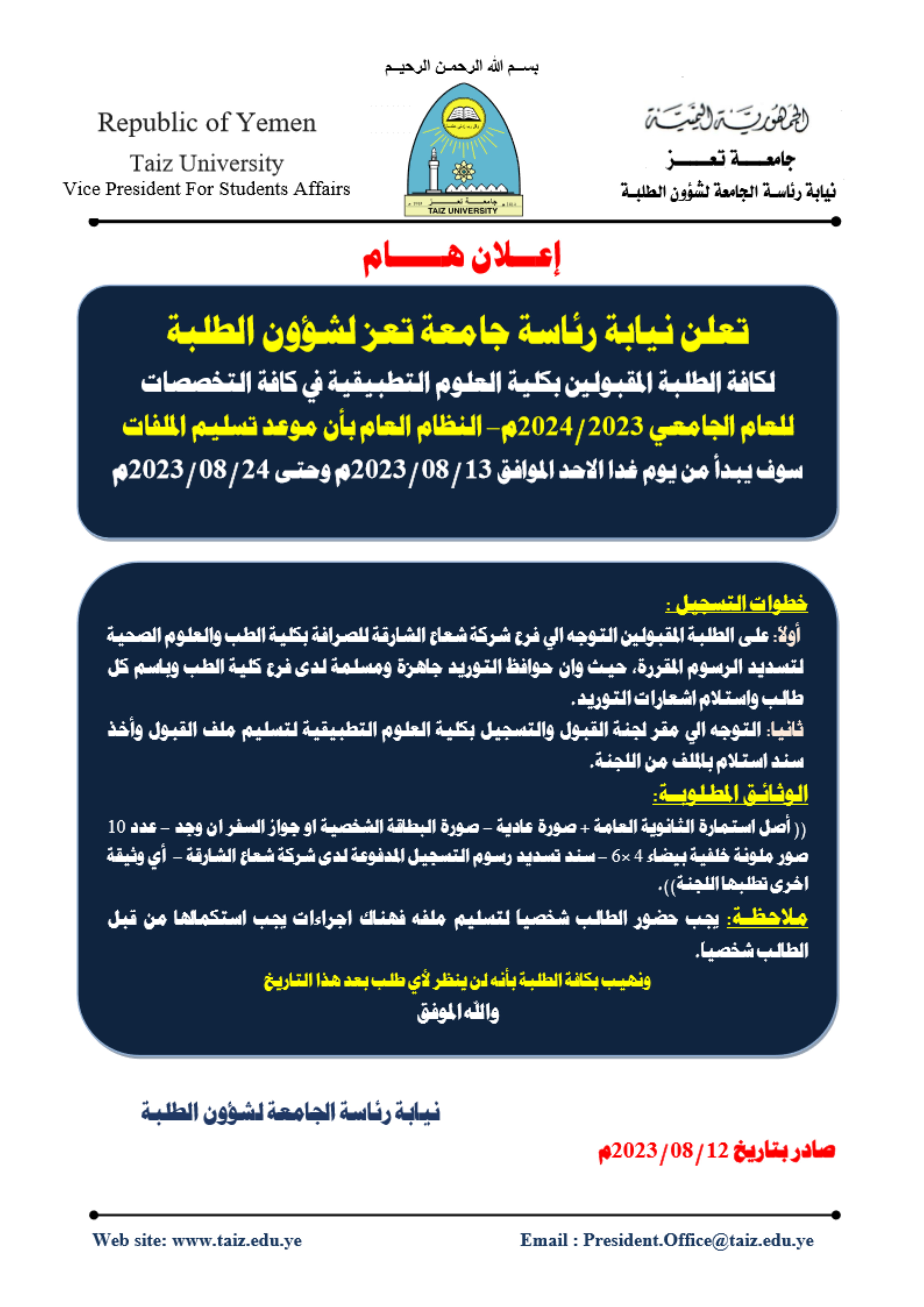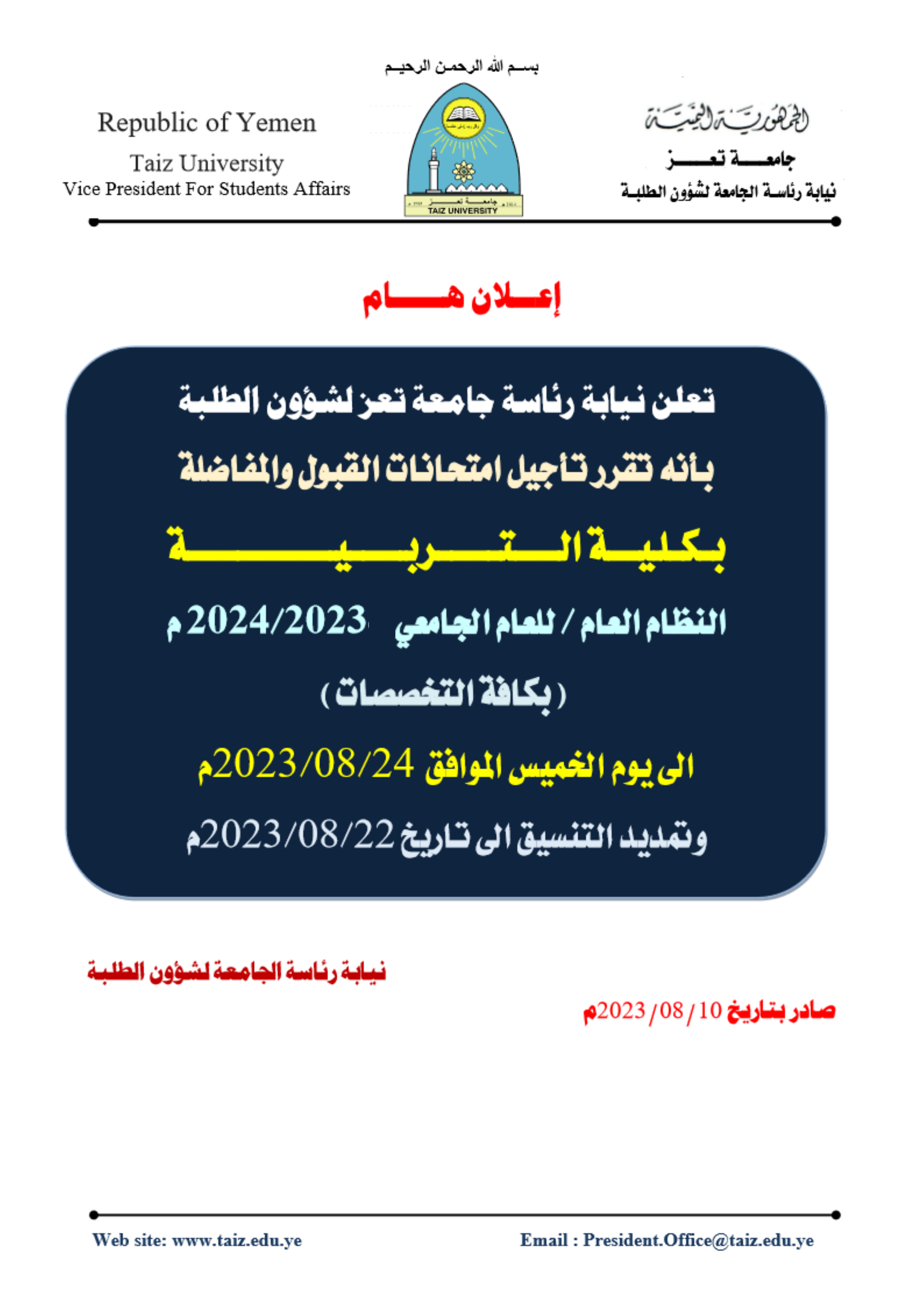نيابة رئاسة الجامعة لشؤون الطلبة