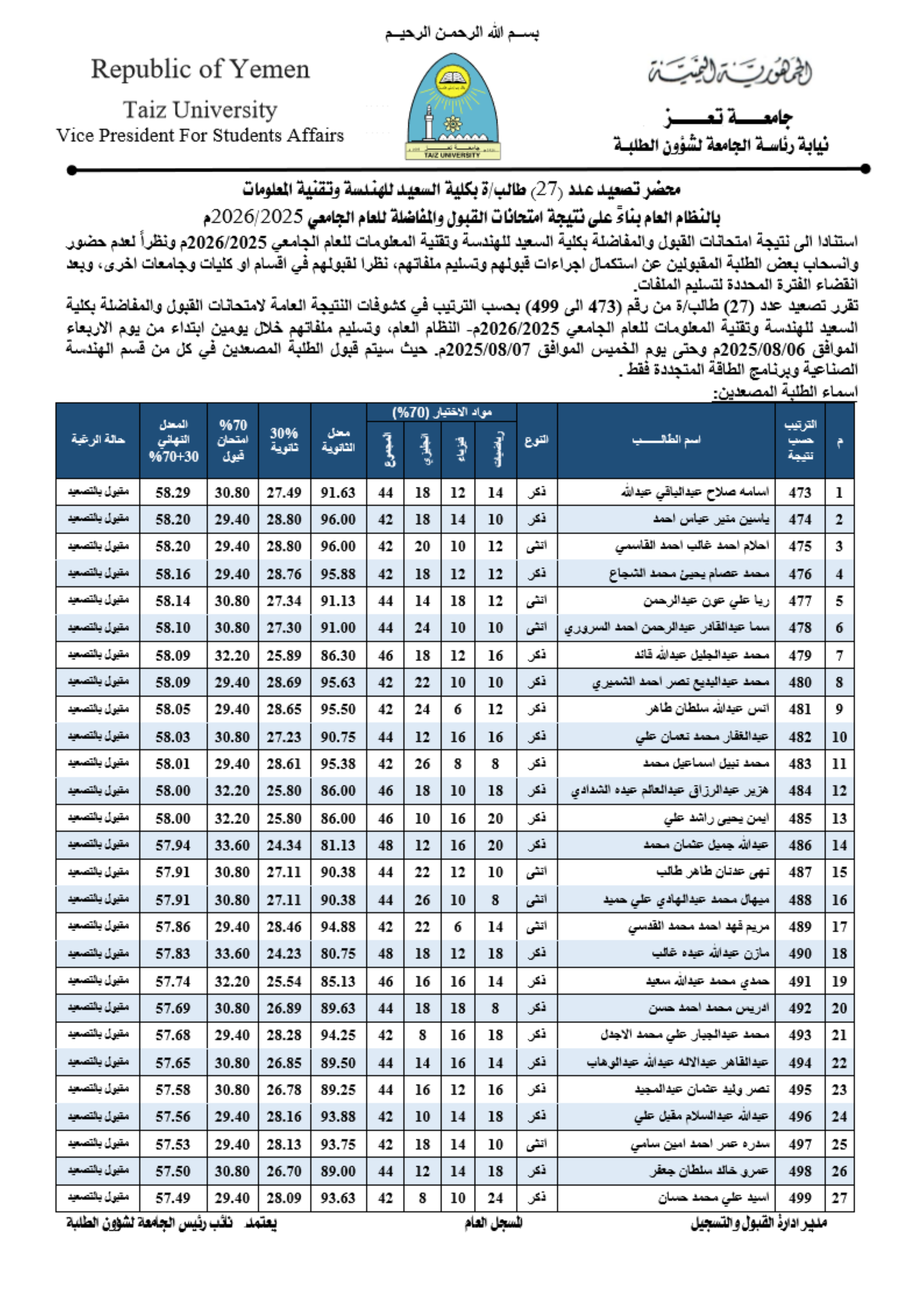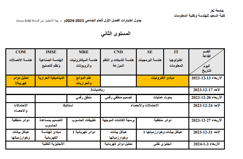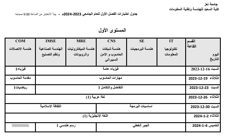 كليه السعيد للهندسة وتقنية المعلومات